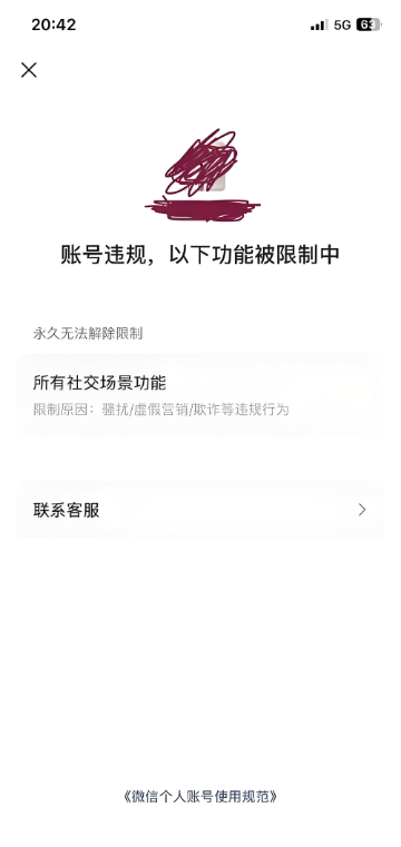 微信团队升级技术模型,精准识别工具人账号特征(如高频建群、群发红包、异体字符聊天等),并采取阶梯式处罚: